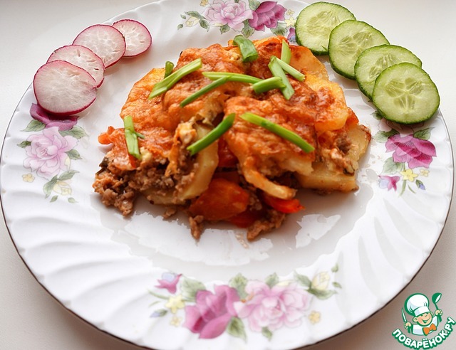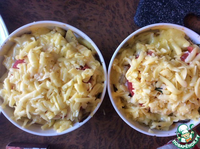Недавно попробовала в кафе одну вкуснятинку) Кухня там простая, почти домашняя, вот и захотелось мне сделать что-то похожее :) Получилось очень даже вкусно и быстро) Сам принцип очень прост и его можно использовать в повседневной готовке чуть ли не каждый день просто меняя ингридиенты:)