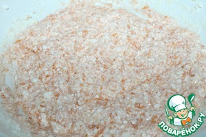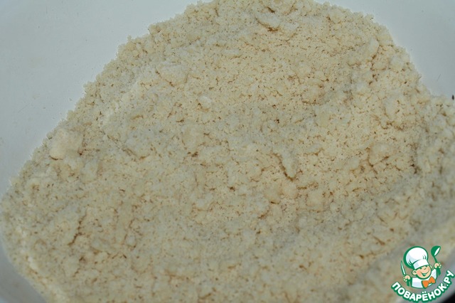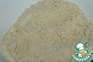 • К маслу постепенно добавлять муку, перетерать до стостояния теста-крошки.