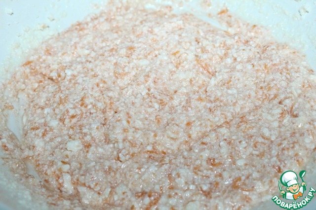 • Добавить перетертые абрикосы к творогу, аккуратно перемешать