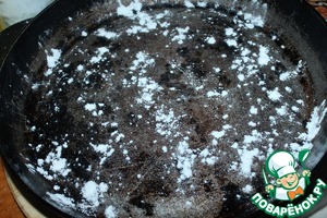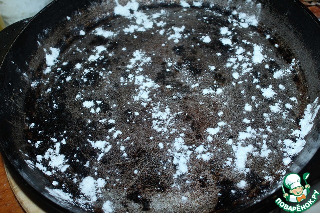 • 200 грамм сливочного масла предварительно заморозить. Затем натереть на крупной терке, добавить 0,5 стакана сахара и соду гашеную уксусом, тщательно перемешать.