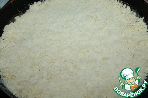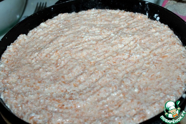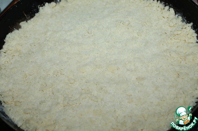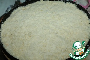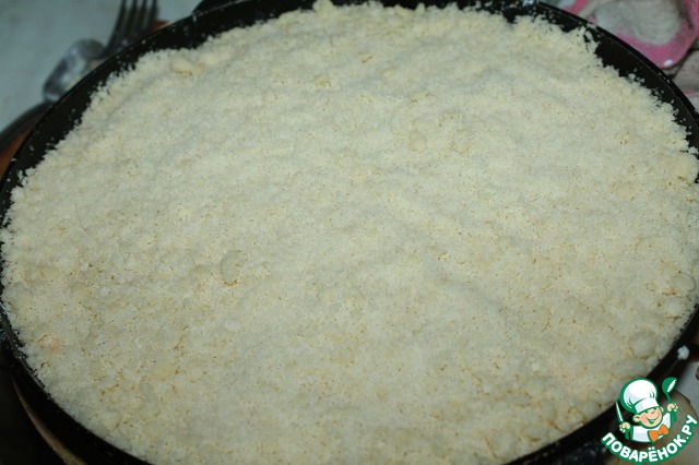 • Присыпать оставшимся тестом и убрать в разогретую до 180 гр. духовку. Выпекать 35-40 мин