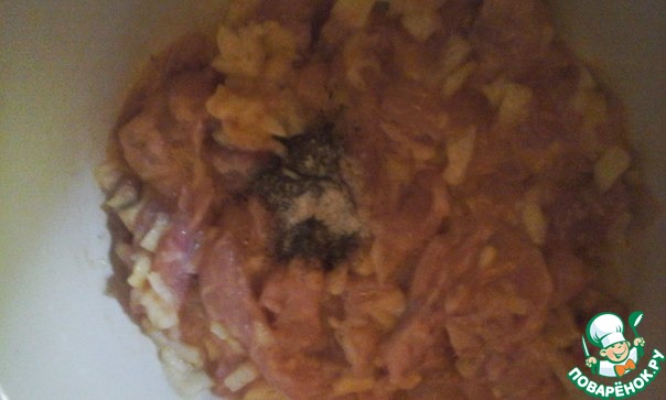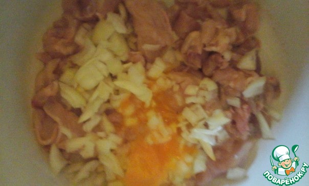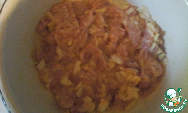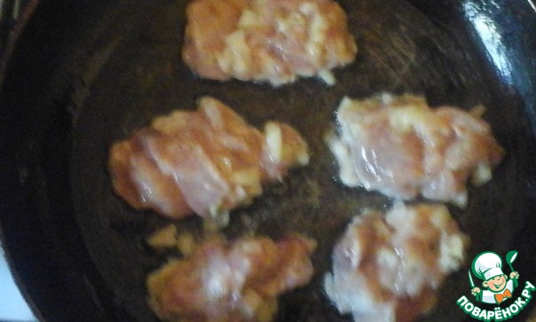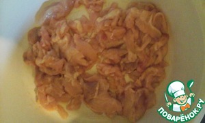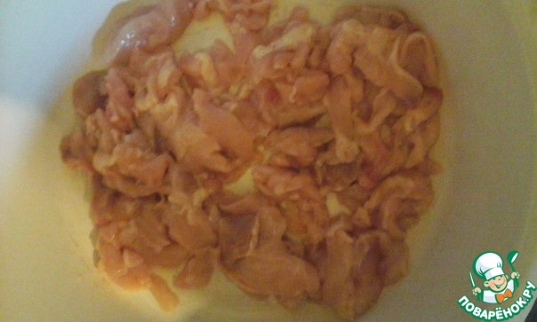 Нарезать мясо маленькими кубиками (у меня было нарезано заранее).