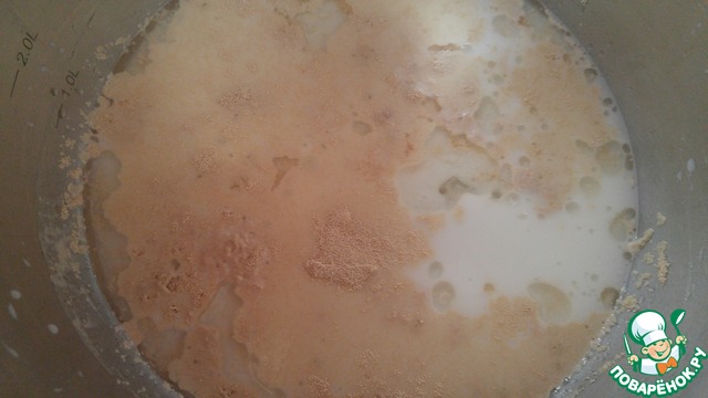 Влить в кастрюлю тан (температура градусов 30), добавить дрожжи, сахар, соль, масло.