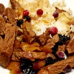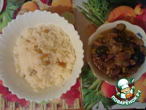 Очень вкусная подлива с курагой, изюмом и черносливом. Мясо в таком сочетании вкусов получается просто изумительно, а рис все это подчеркивает. Очень старое Дагестанское блюдо, готовится почти на все праздники. Готовится очень просто!