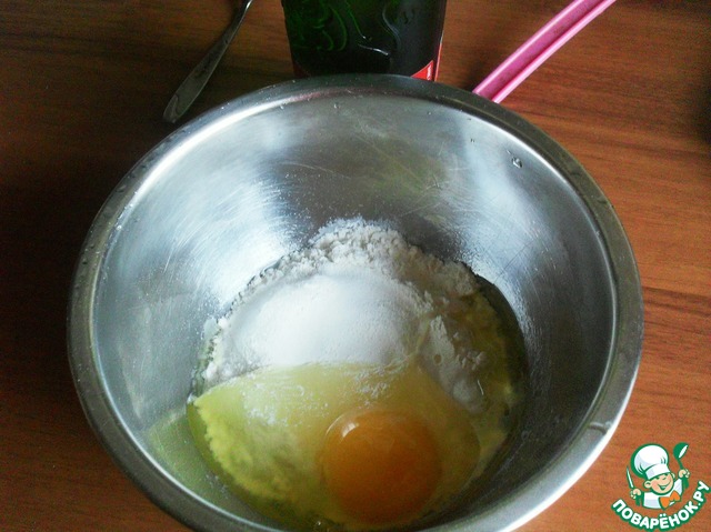 Смешать муку с яйцом и постепенно влить пиво, доводя кляр до густоты магазинной сметаны.