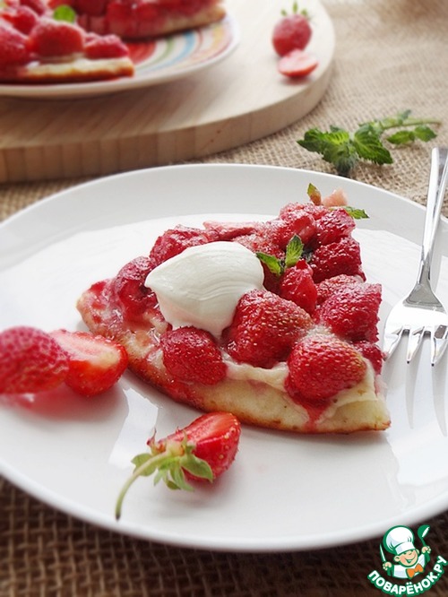 Лепешка понравилась! Вот только клубники у нас уже нет, а если абрикосы, персики взять, ну или еще что-то!?...