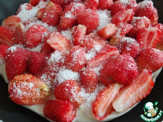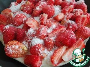 Разложите клубнику на лепешке, посыпьте сахаром с корицей.