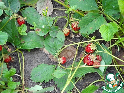 Клубничка последняя, уже мелковата, да и полегла после дождя.
