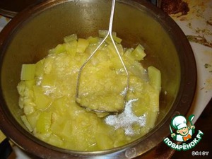 Затем решила превратить кабачки в пюре с помощью толкушки. Мне не понравилось, потому что оставались кусочки.