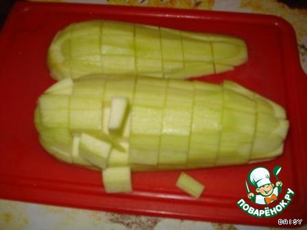 Вот такой у меня был кабачок и такой сыр я использовала.