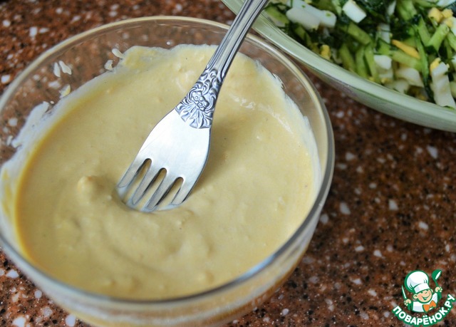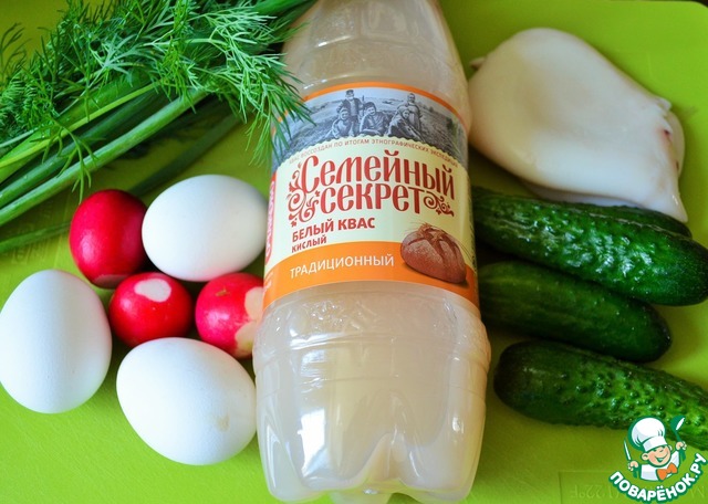 Вот и в этот раз - окрошка классическая и салат из кальмаров, оставалось только заправить.