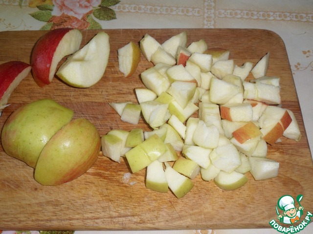Промываем яблоки и нарезаем кубиками 1,5 х 1,5 см.