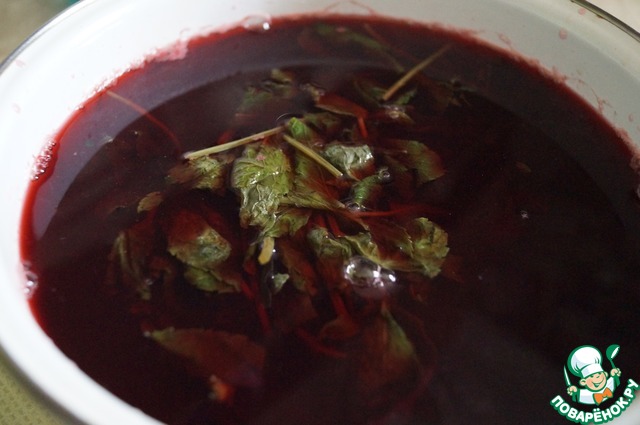 Всё делается быстро. От общего количества отливаем 2 стакана воды, добавляем туда мяту, кипятим 2 минуты, закрываем крышкой и оставляем на полчаса настаиваться.