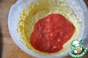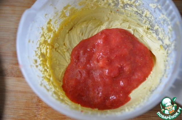 Ягоду собираем, моем, откидываем на дуршлаг, половину перетираем в пюре (я использовала блендер), половину оставляем для подачи.