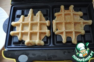 Берём вафельницу, по необходимости смазываем маслом, выпекаем вафли обычным способом согласно инструкции.