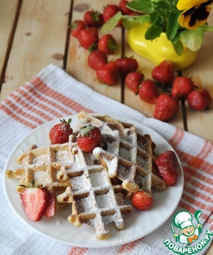 Подаём вафли, украсив свежей клубникой и посыпав сахарной пудрой.