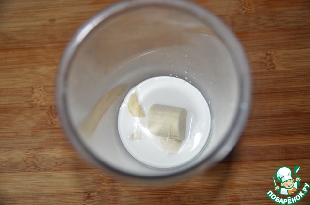 Спелый банан чистим, режем, кладём в стакан блендера, заливаем холодным молоком и сливками. Измельчаем блендером.