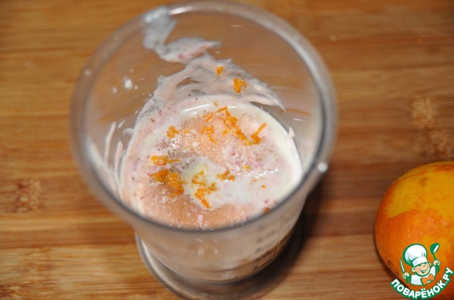 С апельсина натираем цедру, всё взбиваем в пену блендером.