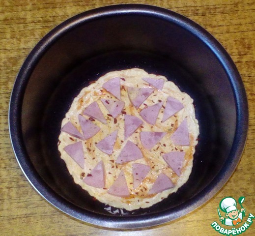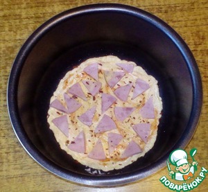 Теперь включаем мультиварку на режим "Пицца" и выпекаем до готовности.