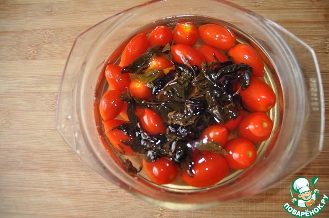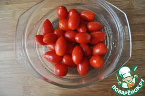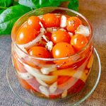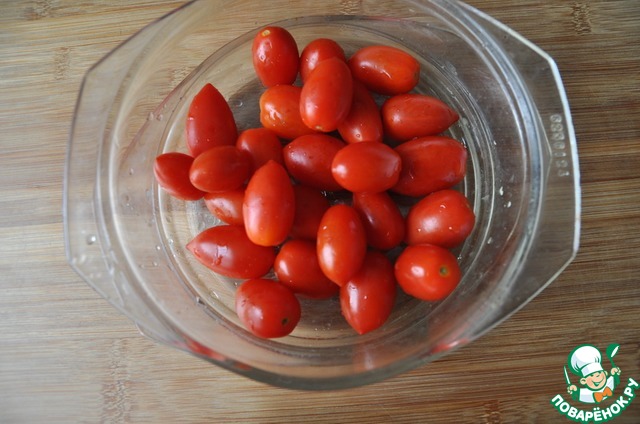 Достаём готовые маринованные помидорки. Они очень вкусны и в таком виде, но предлагаю приготовить из них салат.