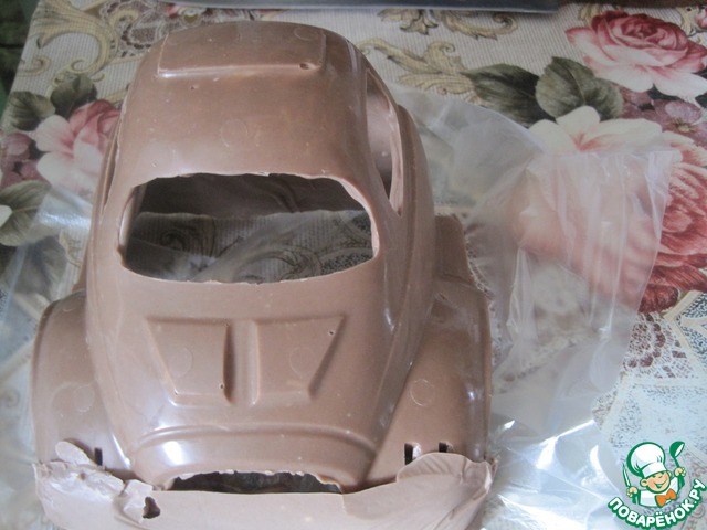 После застывания снимаем шоколадный грузовик, он хорошо отходит от пластмассы. -