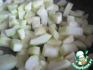 Мякоть сердца соединяем с готовым кабачком.