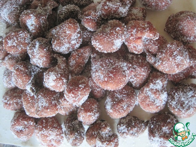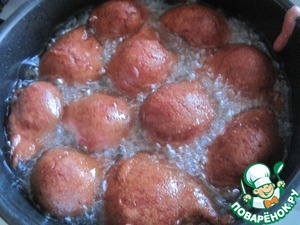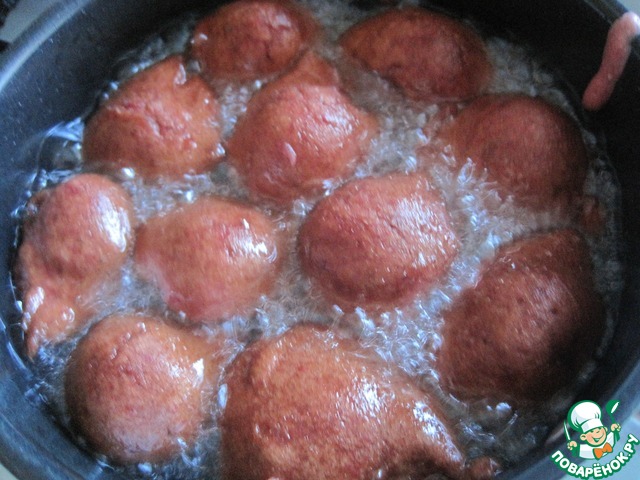 Жарим во фритюре, кладем при помощи чайной ложки небольшие порции, в процессе жарки они сильно надуваются, увеличиваются в объеме.