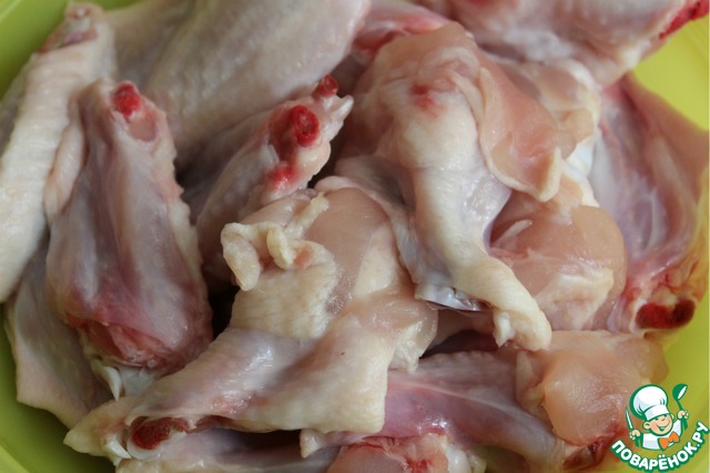 Кончики крыльев не выбрасывайте - уберите в морозилку и потом можно приготовить прекрасный бульон "еврейский антибиотик". -