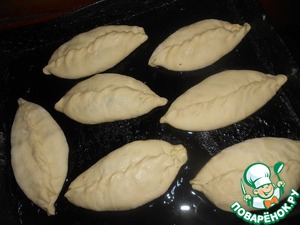 Выложить пирожки на смазанный маслом противень, дать расстояться в течении 20-25 минут.