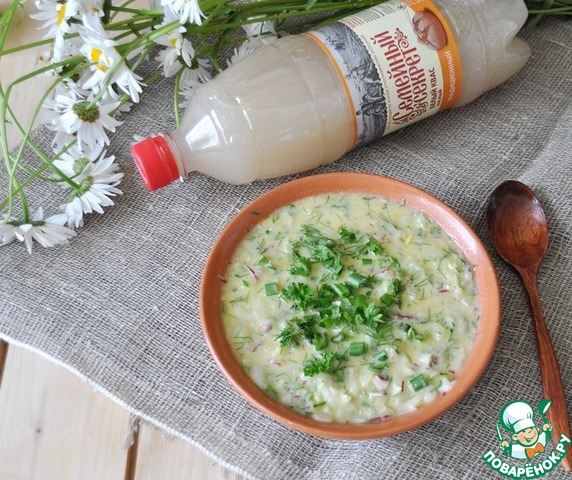 Конечно, с воблой, наверно, немного другой вкус, но у меня получилось тоже очень вкусно. Кстати, сама подруга делала эту окрошку с вяленой селёдкой.