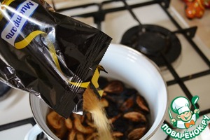 Вливаем 2-4 ст. л. сиропа, в котором варился чернослив.