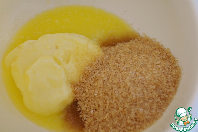 - Сахар коричневый (100 г - в сироп, 80 г - в тесто) — 180 г