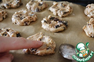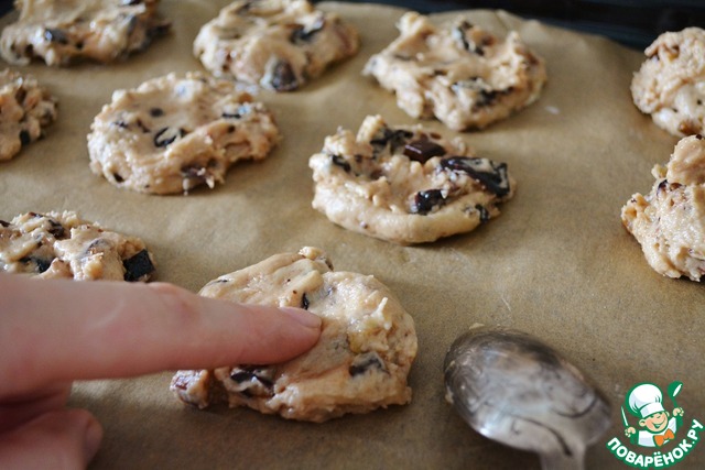 Отщипываем кусочек теста, размером с грецкий орех и придавливаем его пальчиками - чтобы получилась лепешечка.