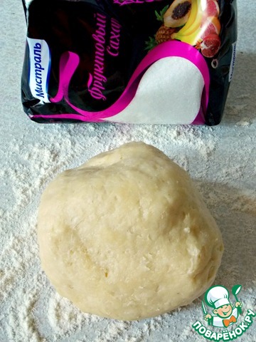 • Сначала займемся тестом. Соединяем просеянную муку, разрыхлитель, фруктовый сахар и масло до образования крошки. Желток размешиваем в ледяной воде и быстро замешиваем тесто. Оно должно быть очень мягким, но не липнуть к рукам. Размять в лепешку, завернуть в пленку и убрать в холодильник на 10 мин.