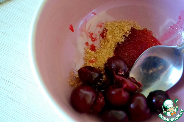 • Готовим сироп из вишни - берем горсть ягод, очищенных от косточек, перетираем их с коричневым сахаром