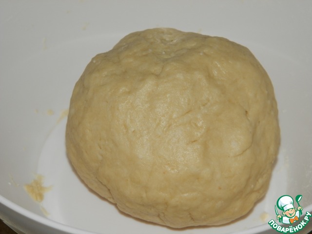 Смешать муку, разрыхлитель, щепотку соли, мягкое сливочное масло и 5 ст. л. остывшего отвара.