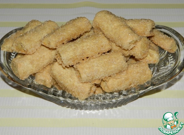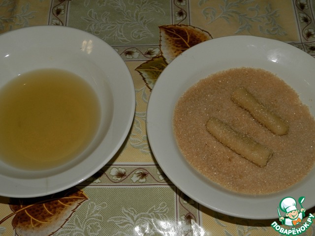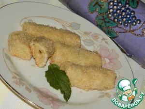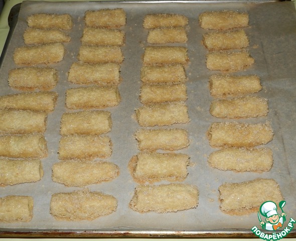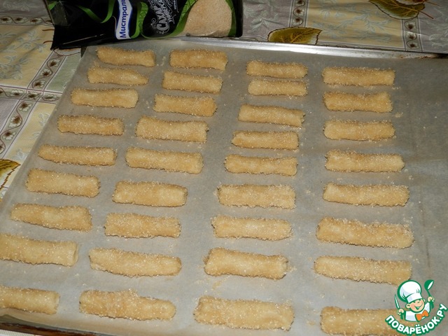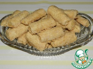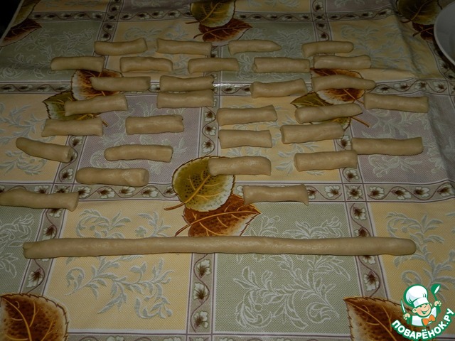 Тесто у меня не хотело раскатываться в жгутики, ломалось. Думаю, что надо было добавить немного еще муки. А я побоялась забить мукой тесто. Но я все равно сделала брусочки. Хотя по красоте внешнего вида до Ваших мне далеко, как до Луны. Но ничего, в следующий раз буду совершенствоваться.