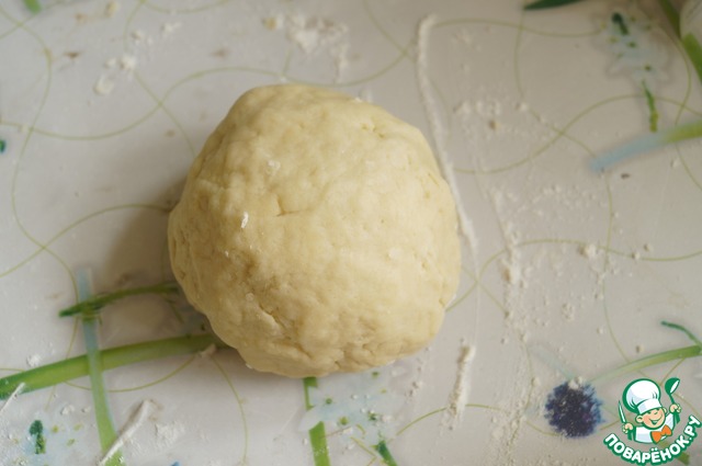 Затем добавить 1-2 ст. л. холодной воды и замесить тесто, сформировать из него шар. Завернуть в пищевую пленку и убрать в холод на 30 минут.