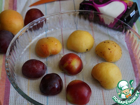 Можно брать только абрикосы или сливы, или персики - на ваш вкус. Лучше, если фрукты будут чуть твердоваты (не перезревшие).