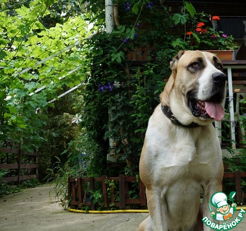 А это наш любимец - алабай Леон. Чужому зайти невозможно, а вот всех домашних залижет "до смерти" - и комнатных собачек и котят т даже куриц.