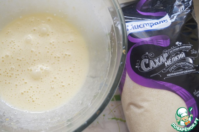 Белки отделить от желтков. Желтки хорошо взбить с 50 г сахара.