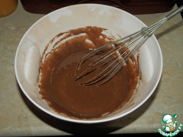 смешать какао и просеянную сахарную пудру, добавить белок и воду, хорошенько перемешать. Если белок от крупного яйца, то, может быть, воды надо будет поменьше. Глазурь должна получиться не густой, но и не слишком жидкой. -