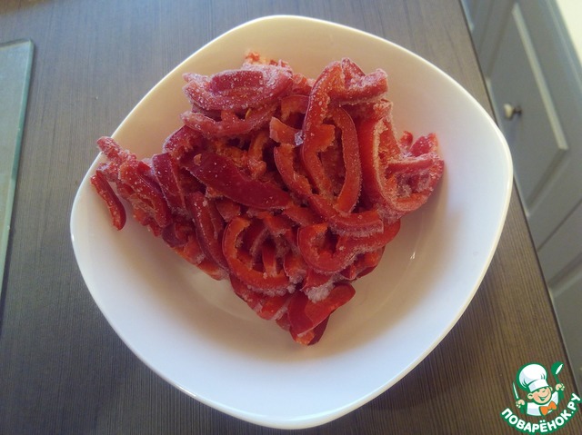 К полуготовому картофелю закладывает нарезанный болгарский перец, у меня замороженный. Верим минут 5.