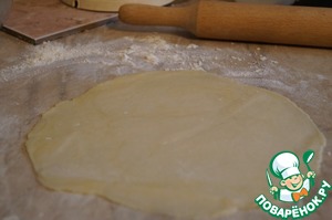 В принципе, если вам нечем заняться, как я уже сказала - час можно не ждать. А постепенно вынимать наши шарики теста из морозилки. Шарики тесто раскатываем на припыленной мукой поверхности как можно тоньше. С красотой форм особо не заморачиваемся. Тесто прекрасно раскатывается, к столу не прилипает.
