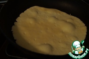 Выпекаем наши коржи на разогретой сухой сковороде до румяности на среднем огне. Пока выпекается один корж - раскатываем второй. Такой вот конвейер. Тесто в процессе жарки пойдёт пузырями, поэтому сразу после выкладывания коржа в сковороду - протыкаем его многократно лопаткой или вилкой.