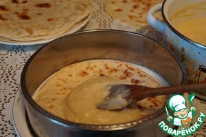 Таким образом, мы выкладываем все коржи, постепенно заполняя нашу форму.