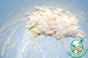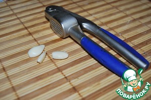 Через чеснокодавку проводим 2-3 зубчика чеснока