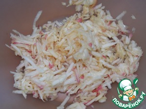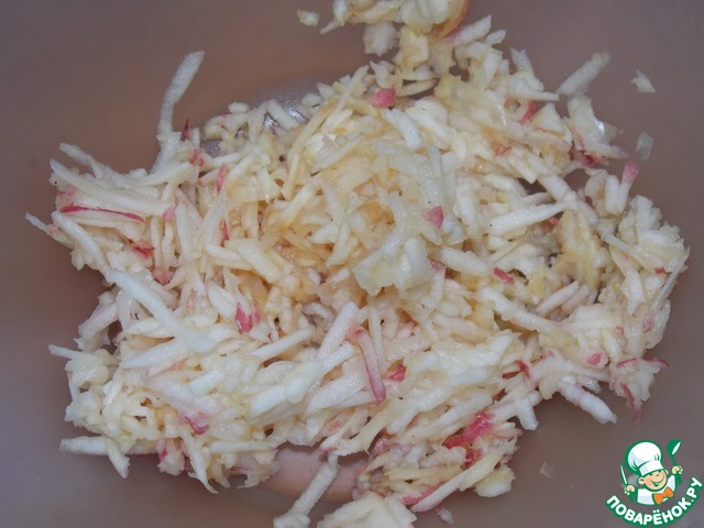 Яблоки натереть на средней тёрке. Полить лимонным соком, перемешать и убрать в холодильник.