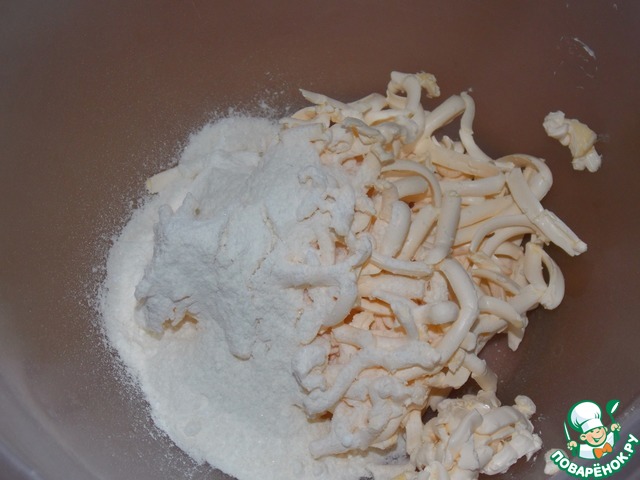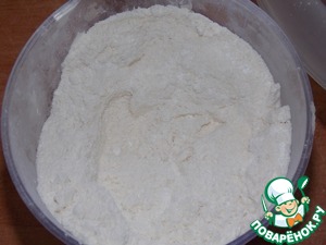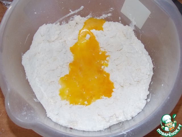 Муку смешать с разрыхлителем, сахаром и щепоткой соли.