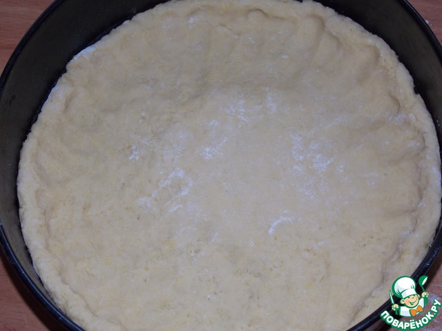 От теста отщипнуть небольшой кусочек. Остальное тесто равномерно распределить по форме, сделать небольшие бортики.